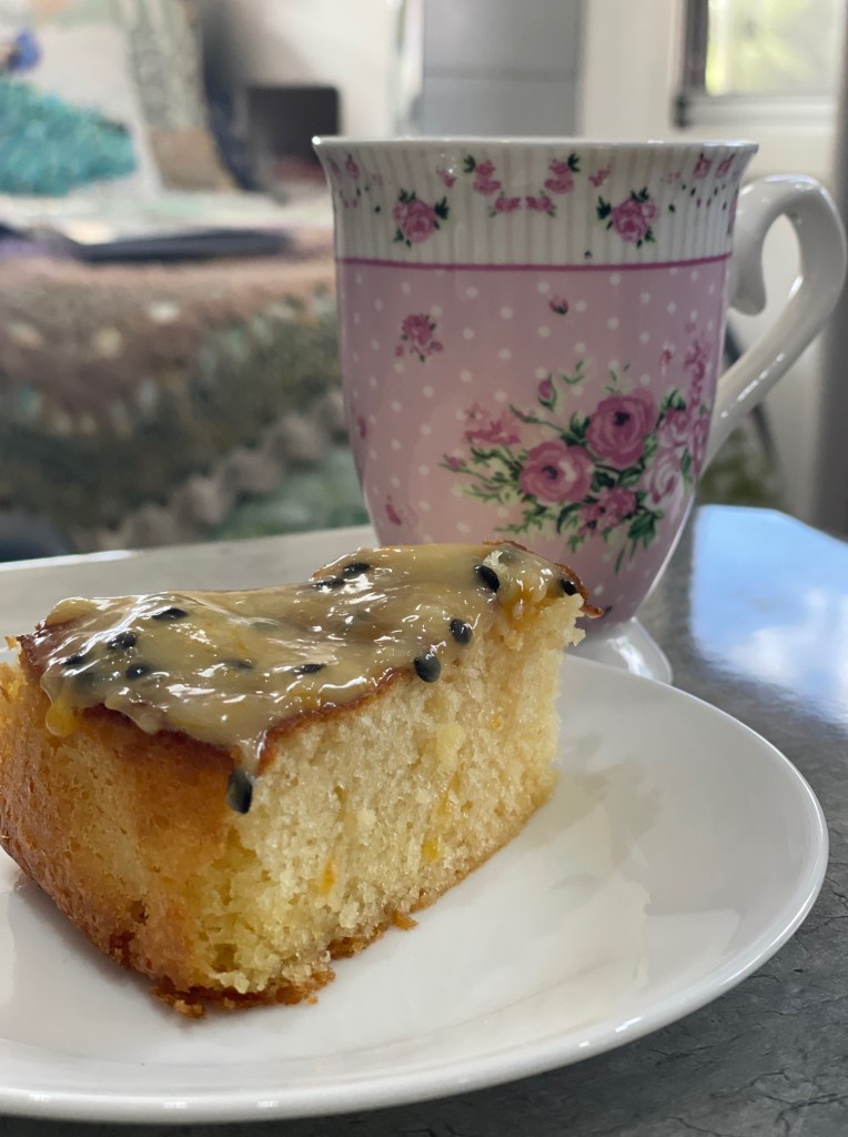 Butter cake mix, baked in the Air-Fryer with passionfruit icing.