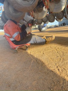 Delivery to Bulk Handling Storage – This requires knowledge, understanding and experience in the field of grain/fertiliser/lime, but also in the lie of the land. Knowing how to load up the trailers with the correct weight over the axles will mitigate possible fines for being overweight, which can only be on one axle not overall. Delivering the grain to a receival point for the farmer requires knowledge of the product and the various grades. The farmer wants the best grade possible, therefore communication with the farm is paramount.